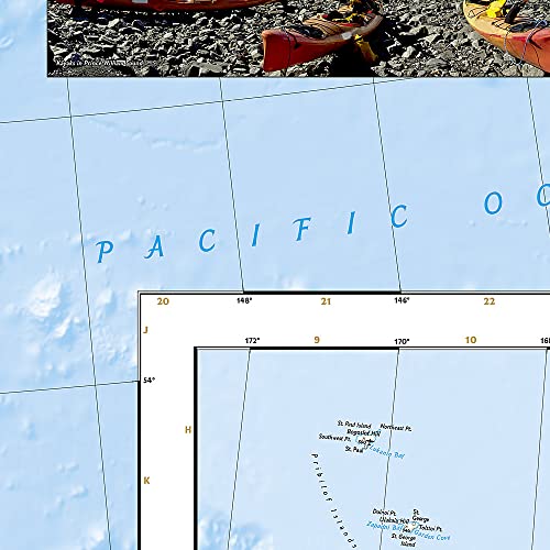 * Waterproof * Tear-Resistant * Travel Map Alaska is a land so vast that is boggles the imagination. It is so large that it could easily contain the next three largest states: Texas, California, and Montana and still have room left over. Despite its large size Alaska has very few inhabitants making it the state with the lowest population density. Alaska is known for its dramatic, diverse terrain of wide-open spaces, mountains and forests, with abundant wildlife and many small towns. A majority of Alaska, sixty percent, is owned and managed by the Federal Government. These lands are open to the public and offer a wide range of activities from sightseeing in Denali National Park to river-running and fishing on one of many wild rivers. Many vistors to Alaska choose to arrive via cruise ship through the famous Inside Passage. The Alaska Adventure Map shows all of these features and more from the temperate rain forest in the Pan Handle to the arctic tundra of the North Slope. This is a state of diverse and wide open spaces that are still truly wild. Alaska’s most famous hotspots, like Denali, Anchorage, the Inside Passage, Klondike Gold Rush National Historical Park, and many others are clearly marked on the map. The boundaries of National Parks, National Forests, Natural Reserves and Wildlife Refuges are all clearly marked. With such a wealth of content, the map is an ideal complement to National Geographic’s Inside Passage Destination Map or any other guidebook to the area. Every Adventure Map is printed on durable synthetic paper, making them waterproof, tear-resistant and tough — capable of withstanding the rigors of international travel. Map Scale = 1:2,250,000 Sheet Size = 25.5″ x 37.75″ Folded Size = 4.25″ x 9.25″