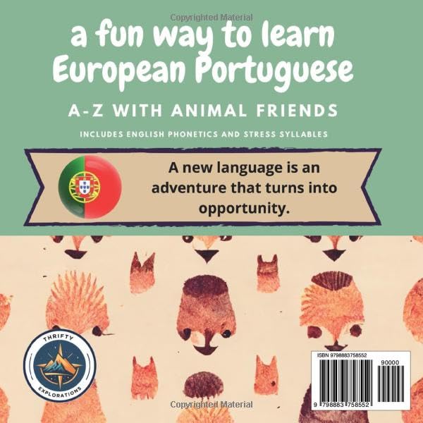Learn the European Portuguese alphabet with simplified English phonetics! This unique book incorporates English phonetics as well as the stress time emphasis in all words and letters. (Stress time emphasis in language learning refers to specifying the syllable in a word that is pronounced with more force.) By including stress time emphasis, it helps the reader to understand how each Portuguese word should be enunciated. This approach also helps in grasping the rhythm and intonation of the beautiful Portuguese language. This book is an excellent resource for parents who wish to introduce their children to a new language at an early age. Young children have a natural aptitude for learning languages and can absorb new sounds, words, and patterns more easily than older learners. This often results in more native-like pronunciation and fluency. Children who learn a different language gain insights into different cultures, perspectives, and ways of life, promoting a more inclusive and understanding worldview. Check out my other European Portuguese language learning books!