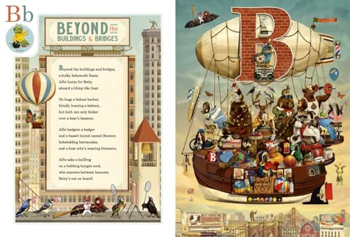 Join Alfie the bookworm as he travels through the alphabet from A to Z in this interactive seek-and-find picture book adventure. Meet Alfie the friendly bookworm and his pet dust bunny, Betty! When Betty runs off, Alfie travels through each letter in the alphabet searching for her–and finds much more along the way. From An Awesome Assembly of Animals to a Zamboni Ride Through the Zoo, follow Alfie and discover all the wild wonders of the alphabet–like a bobcat barber blindly buzzing a baboon, and a unicorn on a unicycle playing ukulele! What else can you spot? Part Where’s Waldo, part I-Spy, this is an ABCs book unlike any other. Each letter of the alphabet is its own unique destination, with a richly illustrated scene full of creatures, objects, and actions that begin with the corresponding letter, a rhymed poem, and a guide to help young readers decode each scene! Whether reading alone or with the whole family, Alfie’s A to Z delivers endless hours of entertainment, and children will love following along with the adorable characters as they learn the alphabet!