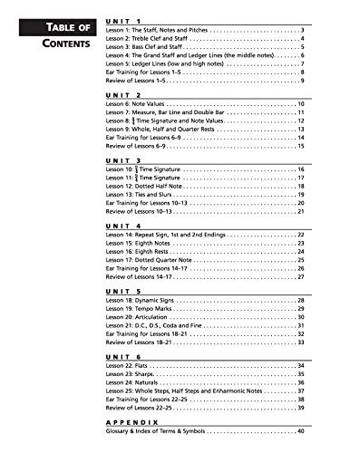 Alfred’s Essentials of Music Theory is designed for students of any age, whether listeners or performers, who want to have a better understanding of the language of music. In this all-in-one theory course, you will learn the essentials of music through concise lessons, practice your music reading and writing skills in the exercises, improve your listening skills with the available ear-training CDs (sold separately), and test your knowledge with a review that completes each unit. Computer software is also available with randomized drilling of the material and scorekeeping. Book 1 (Lessons 1-25): Staff, Notes and Pitches * Treble & Bass Clefs * Grand Staff & Ledger Lines * Note Values * Measure, Bar Line and Double Bar * 2/4, 3/4 & 4/4 Time Signatures * Whole, Half & Quarter Notes/Rests * Dotted Half & Quarter Notes * Ties & Slurs * Repeat Sign, 1st & 2nd Endings * Eighth Notes & Rests * Dynamic Signs, Tempo Marks & Articulation * D.C., D.S., Coda & Fine * Flats, Sharps & Naturals * Whole & Half Step, Enharmonic Notes. The complete line of Alfred’s Essentials of Music Theory includes Student Books, a Teacher’s Answer Key, Ear-Training CDs, Double Bingo games, Flash Cards, Reproducible Teacher’s Activity Kits, and interactive software for students and teachers in private study, studio and network environments.