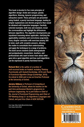 This book is devoted to five main principles of algorithm design: divide and conquer, greedy algorithms, thinning, dynamic programming, and exhaustive search. These principles are presented using Haskell, a purely functional language, leading to simpler explanations and shorter programs than would be obtained with imperative languages. Carefully selected examples, both new and standard, reveal the commonalities and highlight the differences between algorithms. The algorithm developments use equational reasoning where applicable, clarifying the applicability conditions and correctness arguments. Every chapter concludes with exercises (nearly 300 in total), each with complete answers, allowing the reader to consolidate their understanding and apply the techniques to a range of problems. The book serves students (both undergraduate and postgraduate), researchers, teachers, and professionals who want to know more about what goes into a good algorithm and how such algorithms can be expressed in purely functional terms.