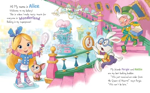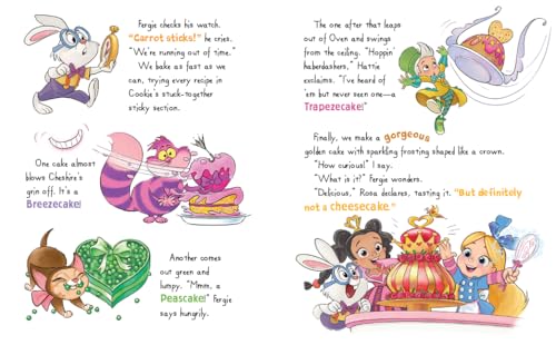 Where There’s a Whisk, There’s a Way takes readers on a magic trip down the rabbit hole to the place where sugar and spice make everything nice: Alice’s Wonderland Bakery. Based on the new Disney Junior series, this gorgeously illustrated original picture book follows Alice, the 8-year-old great-granddaughter of the original Alice, after she inherits her great-grandmother’s enchanted bakery in the wacky, wonderful world of Wonderland. With a sprinkle of creativity, a dash of curiosity, and a can-do attitude, Alice is ready to confront any kitchen challenge, from catering a mad tea party to baking an unbirthday cake for the Queen of Hearts’s daughter Princess Rosa. In this book, Alice and her friends work together to bake the perfect heart-shaped cheesecake for a special party for the Queen of Hearts. When they can’t find the recipe they are looking for, they go on a baking adventure to create a wonderful Wonderland creation. Complete your Disney collection with these fan favorites: Mira, the Royal Detective: The New Royal Detective Fancy Nancy: My Fanciest Things Disney Princess: Once Upon a Flower Girl 101 Dalmatians: Spot the Difference Mulan’s Lunar New Year Disney My First Stories: Alice Wants to Grow Sofia the First