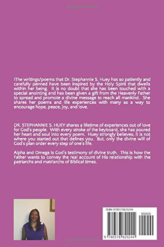 Stephannie Huey has awakened the poet within her to share a compilation of lyrical verse that explores a variety of relatable issues that offer a glimpse into the mysteries of the Heavens. Through her faithful walk through life as she faced challenges, she has dedicated her life to the service of God.She wants to intrigue your appetite as you anticipate purchasing and reading Alpha and Omega Testimony–starting at Genesis and ending at Revelation. The spirit of God instructed her not to write the books in between–only to recant the true beginning and the true ending. Nothing more or less. This book unveils the true mysteries of God. As each poem was spiritually penned, she became enlightened with God’s plan for mankind. God instructed her to tell the beginning–Genesis and Revelation from His perspective–not translated by King James’ translators. Yes. We’ve read Genesis and Revelation as the Biblical King James has depicted. But, wow, the adventure that God took her on to reveal His Testimony of events is astonishing. This is a must read to understand God’s truth. The Spirit of God has set a feast with much for you to eat. Come to the Holy Feast.