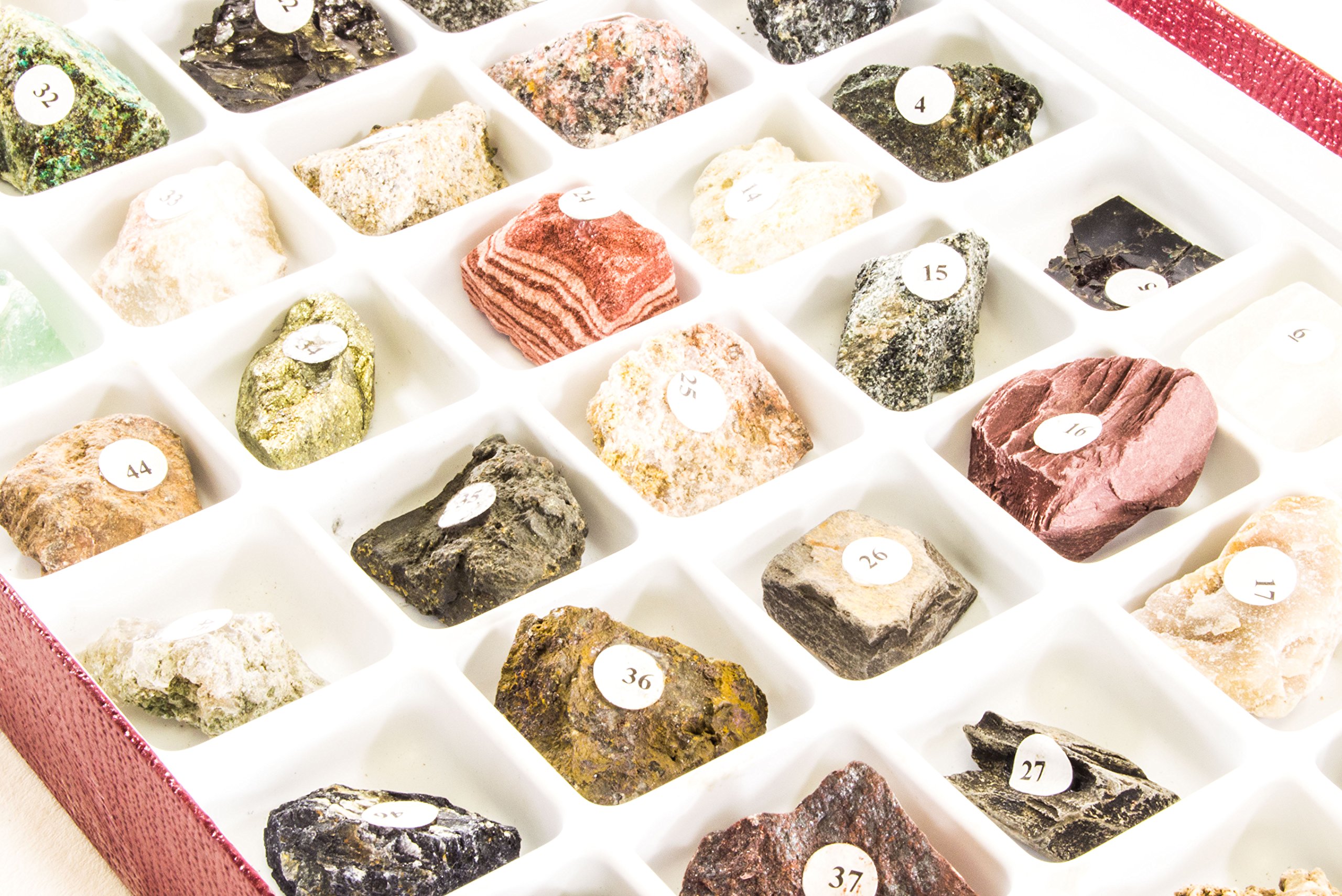 This collection of rock and mineral specimens provides a hands-on resource for students to learn geology and earth science concepts.