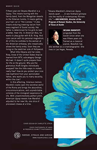 A vivid and funny memoir about growing up Gypsy and becoming American Fifteen-year-old Oksana Marafioti is a Gypsy. This means touring with the family band from the Mongolian deserts to the Siberian tundra. It means getting your hair cut in “the Lioness.” It also means enduring sneering racism from every segment of Soviet society. Her father is determined that his girls lead a better, freer life. In America! Also, he wants to play guitar with B. B. King. And cure cancer with his personal magnetism. All of this he confides to the woman at the American embassy, who inexplicably allows the family entry. Soon they are living on the sketchier side of Hollywood. What little Oksana and her sister, Roxy, know of the United States they’ve learned from MTV, subcategory George Michael. It doesn’t quite prepare them for the challenges of immigration. Why are the glamorous Kraft Singles individually wrapped? Are the little soaps in the motels really free? How do you protect your nice new boyfriend from your opinionated father, who wants you to marry decently, within the clan? In this affecting, hilarious memoir, Marafioti cracks open the secretive world of the Roma and brings the absurdities, miscommunications, and unpredictable victories of the immigrant experience to life. With unsentimentally perfect pitch, American Gypsy reveals how Marafioti adjusted to her new life in America, one slice of processed cheese at a time.