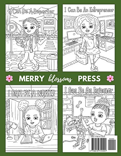 **Update: We have an inspirational career coloring book for boys too! Check out our author’s page or type in B08W7JH34Q in the search bar to find it** Looking for an inspirational coloring book for your little girls? Look no further! This lovely book contains the following… 24 unique pages featuring black and brown girls with different natural hairstyles Each page contains a different career illustration Illustrations are printed on single sides to prevent any bleed issue Large size (8.5 x 11 inches) The coloring book goes well with multicultural crayons BONUS: Word Matches, Word Searches & Mazes included! So don’t wait any longer. Scroll up and click the BUY NOW button to grab copies for your little girls today! P.S. If your girls have an interest in STEM (Science, Technology, Engineering & Mathematics), then click on our author’s page (Merry Blossoms Press) to check out our STEM coloring and activity book! P.S.S: We have an inspirational career coloring book your for boys too! Check out our author’s page or type in B08W7JH34Q in the search bar to find it**