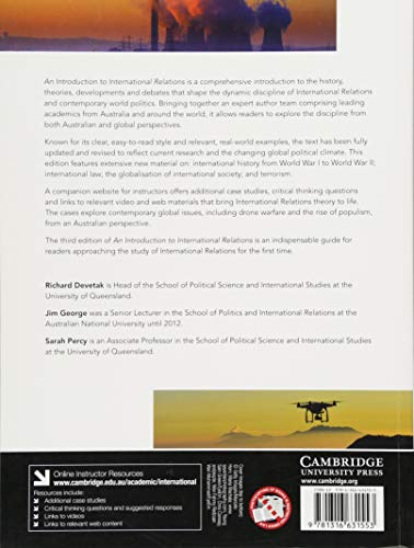 An Introduction to International Relations is a comprehensive introduction to the history, theories, developments and debates that shape the dynamic discipline of international relations and contemporary world politics. Bringing together an expert author team comprising leading academics from Australia and around the world, it allows readers to explore the discipline from both Australian and global perspectives. Known for its clear, easy-to-read style and relevant, real-world examples, the text has been fully updated and revised to reflect current research and the changing global political climate. This edition features extensive new material on: international history from World War I to World War II; international law; the globalisation of international society; and terrorism. A companion website for instructors offers additional case studies, critical thinking questions and links to relevant video and web materials that bring international relations theory to life.