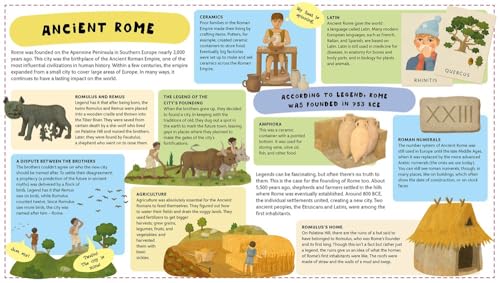 Journey back to Ancient Rome with 6 interactive fold-out maps in this enthralling illustrated book for kids, exploring bygone culture, history, gods, gladiators, and more. This immersive book takes kids on a deep exploration of one of history’s most significant civilizations. Six interactive fold-out maps bring to life the rich tapestry of this vast historic civilization – its vibrant culture, fascinating gods, legendary gladiators, and the rise and fall of its mighty empire. These detailed maps provide a hands-on experience, making history come alive with vivid visuals and engaging facts. Children will walk in the sandals of Ancient Romans, unraveling the secrets of everyday life and dipping their toes into the complex worlds of politics, trade, and military might. Ancient Rome for Kids is the perfect gateway for young learners ages 6-9 to connect with history in a fun and interactive way. By delving into the wonders of Ancient Rome, children will gain historical knowledge and develop a curiosity for world history, sparking their imagination and igniting a passion for lifelong learning. Whether a child is a budding history enthusiast or just curious about the past, this book offers an alluring and informative resource.