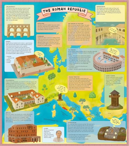 This interactive book teaches young learners about the history, culture, and geography of Ancient Rome through engaging maps and facts.