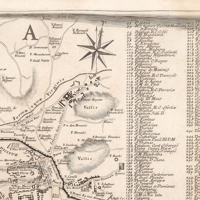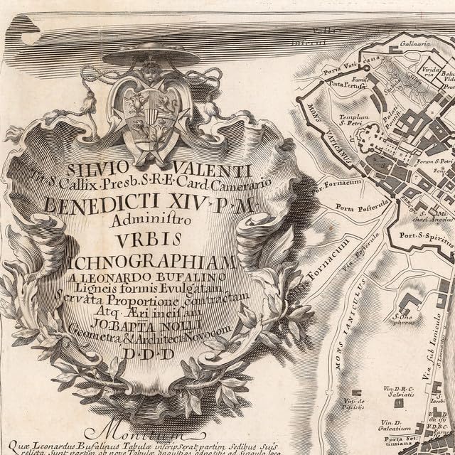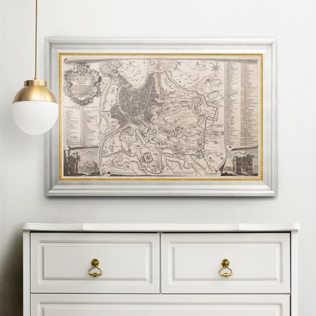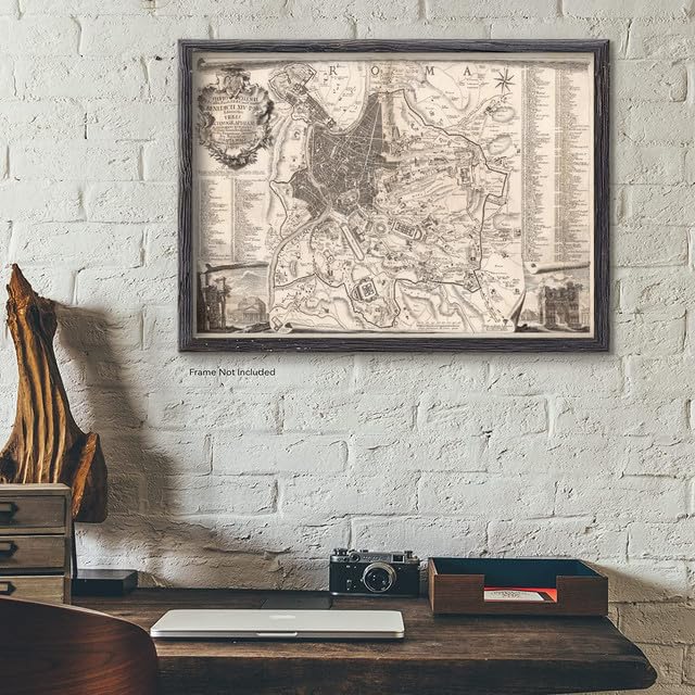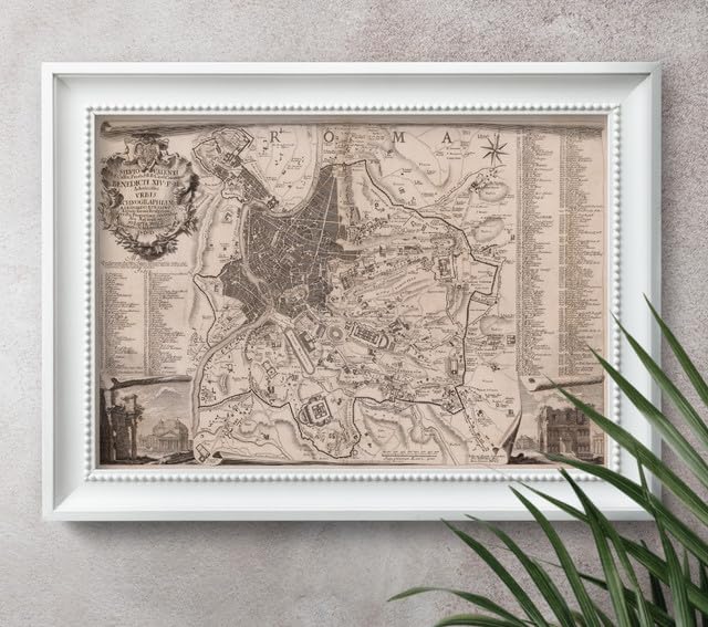 Ancient Rome Italy by Giovanni Battista Nolli This vintage map reprint of Ancient Rome Italy by Giovanni Battista Nolli, originally designed in 1748, offers a captivating glimpse into the intricacies of Rome during the 18th century. Nolli’s meticulous attention to detail is evident in the map’s precise depiction of the city’s streets, buildings, and landmarks, providing a valuable historical resource for scholars and enthusiasts alike. Through this print, viewers can explore the architectural marvels and urban layout of Ancient Rome, gaining a deeper understanding of the city’s rich cultural and historical heritage. By combining high-quality satin paper with a giclee printing process, we offer this Nolli map reprint with the most desirable characteristics – accurate colors, archival properties as well as both tear and water resistance. The image has been digitally captured directly from the original and displays a genuine look and tone; including small creases, flaws and aging. This adds to the authenticity, presentation and beauty of the piece. Our process produces this high-quality, low-cost ancient Rome art print for your home, office or living space, and it is sized to fit into economical standard frame formats (frames sold separately). * Map is expertly sized to fit into economical and easy-to-find standard frames. * Digitally refined and giclee printed in the United States with OEM ink sets. * Produced on high-end, water-resistant and tear-proof satin polypropylene paper. * Items are as pictured. Order with confidence. Satisfaction Guaranteed. * Handled with care and shipped promptly in a heavy-gauge mailing tube.