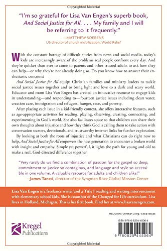 Equips parents to inspire kids to take on social injustice–at any age With the constant barrage of difficult stories through news and social media, today’s kids are increasingly aware of the real problems real people confront every day. And they’re quicker than ever to come to parents and other trusted adults to ask how they can help–or why they’re not already doing so. And Social Justice for All equips Christian families to tackle social justice issues together. It inspires them to bring light and love to a dark and scary world. Educator and mom Lisa Van Engen creates innovative resources to engage kids in understanding and responding to fourteen justice issues such as clean water, creation care, immigration and refugees, hunger, race, and poverty. After placing each issue in kid-friendly context, she offers interactive features: High-interest conversation starters for each age group to challenge thinking and assumptions A family devotional to anchor each social justice issue in God’s Word Engaging, age-tiered activities for reading, playing, observing, creating, connecting, and experimenting in God’s world Tips and internet links to extend awareness and invest resources in social justice Throughout each chapter, children speak their own thoughts about injustice and what they think God is calling them to do. By looking at both the roots of injustice and what Christians can do right now to help, And Social Justice for All empowers both adults and children to encounter a broken world with insight and empathy. Simple yet powerful, it lights the path for families to make a real, God-directed difference together.