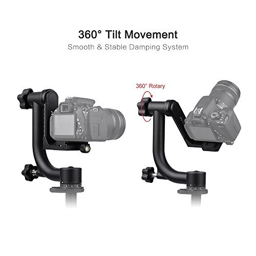 - Pan and tilt direction support 360deg panoramic movement, meet different shooting angle easily; Damping system ensure smooth and quite moving. The graduated lead rail allow you to make simply vertical position adjustment.