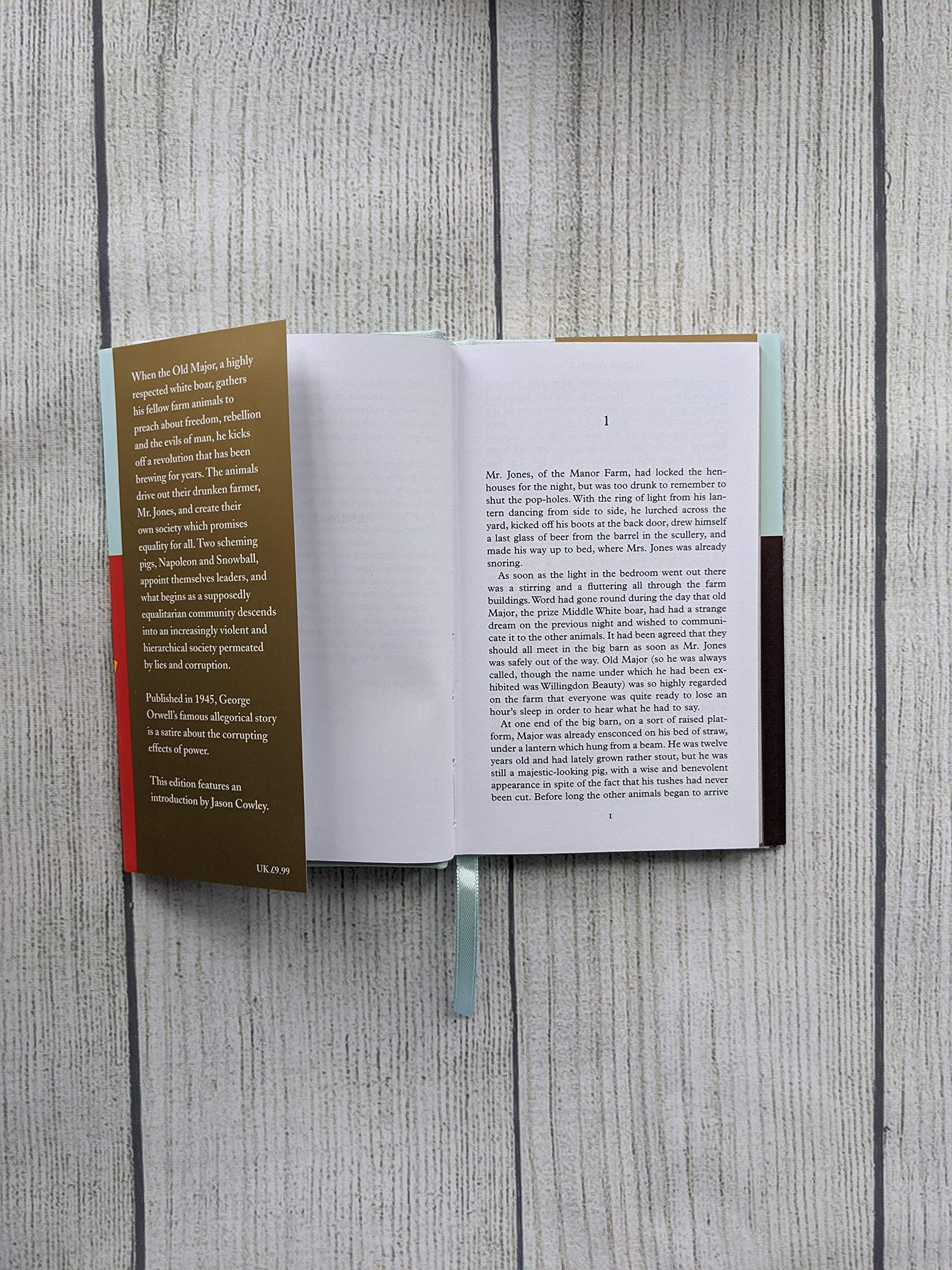 Animal Farm is George Orwell’s brilliant political satire and allegorical fable about the corrupting effects of power. Published in 1945 it is, to this day, one of the most famous and influential works of fiction ever written. Part of the Macmillan Collector’s Library; a series of stunning, clothbound, pocket-sized classics with gold foiled edges and ribbon markers. These beautiful books make perfect gifts or a treat for any book lover. This edition features an introduction by journalist and writer Jason Cowley. When the old Major, a highly respected white boar, gathers his fellow farm animals to preach about freedom, rebellion and the evils of man, he incites a revolution that has been brewing for years. The animals drive out their drunken farmer, Mr Jones and create their own society which promises equality for all. Two scheming pigs, Napoleon and Snowball, appoint themselves leaders and what begins as a supposedly equalitarian community descends into an increasingly violent and hierarchical society permeated by lies and corruption.