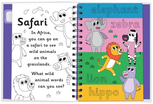This reusable water coloring book helps develop early literacy and pre-writing skills by allowing children to trace letters and learn new words.