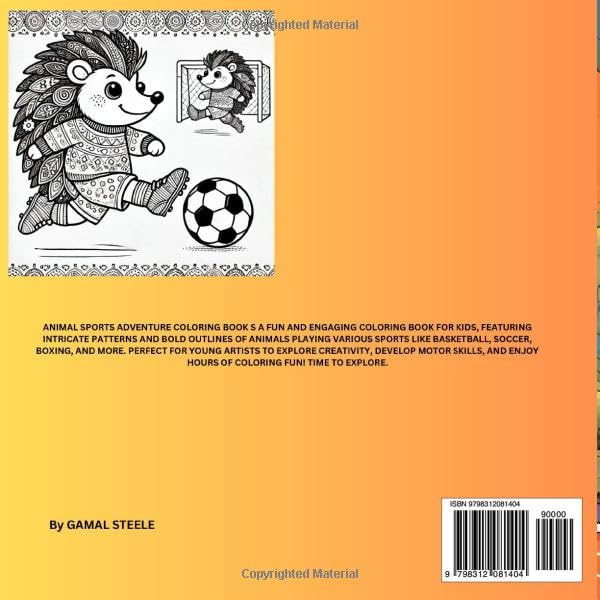 Animal Sports Adventure Coloring Book is a fun and engaging coloring book for kids, featuring intricate patterns and bold outlines of animals playing various sports like basketball, soccer, boxing, and much more. Perfect for young artists to explore creativity, imagination, develop motor skills, and enjoy hours of coloring fun!