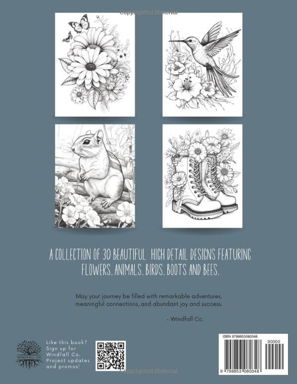 Escape into the enchanting world of Animals and Flowers Adult Coloring Book, where nature’s beauty comes alive through 30 exquisite grayscale designs. Immerse yourself in the serenity of intricate flowers and graceful animals, meticulously crafted to help you unwind and relax your mind. With a delightful combination of floral elegance and adorable wildlife, this coloring book offers a perfect artistic retreat for adults, teens, and seniors alike. Embrace the therapeutic benefits of coloring as you bring these captivating designs to life, adding your personal touch to every page. Grayscale coloring provides a unique and gratifying experience, allowing you to easily achieve stunning results even if you’re new to coloring. Each design is thoughtfully composed, enhancing the subtle details and shading, making your finished masterpieces look like true works of art. Indulge in a creative journey through blossoming flowers and charming animals, and let the stress of the day fade away. Whether you’re an experienced colorist or just discovering the joys of coloring, this book offers a relaxing escape that inspires creativity and brings joy to your heart. Discover the calming and meditative effects of Animals and Flowers Adult Coloring Book, and experience the joy of transforming grayscale illustrations into colorful expressions of beauty. Get ready to embark on an artistic adventure that will rejuvenate your spirit and leave you with a sense of accomplishment and tranquility. Note: For best results, use colored pencils or fine-tip markers to add depth and vibrancy to these captivating grayscale designs. Coloring Book 8.5×11″ 62 Pages : 30 Coloring Designs+30 Bleed protection pages Features Flowers, Animals, Birds, Boots and Bees