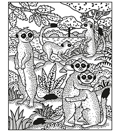 Brush water over the black and white illustrations and watch as the animal scenes burst into beautiful color! Sixteen detailed pictures include kangaroos, penguins, hippos, meerkats and lots more. With a handy fold-out back cover to prevent colors running through to the page beneath.