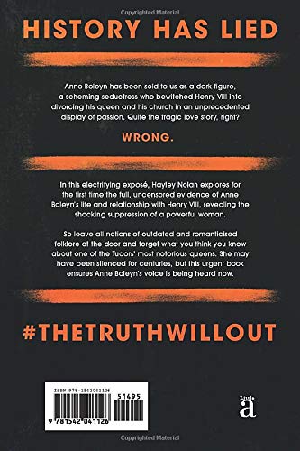 A bold new analysis of one of history’s most misrepresented women. History has lied. Anne Boleyn has been sold to us as a dark figure, a scheming seductress who bewitched Henry VIII into divorcing his queen and his church in an unprecedented display of passion. Quite the tragic love story, right? Wrong. In this electrifying expose Hayley Nolan explores for the first time the full, uncensored evidence of Anne Boleyn’s life and relationship with Henry VIII, revealing the shocking suppression of a powerful woman. So leave all notions of outdated and romanticised folklore at the door and forget what you think you know about one of the Tudors’ most notorious queens. She may have been silenced for centuries, but this urgent book ensures Anne Boleyn’s voice is being heard now. #TheTruthWillOut
