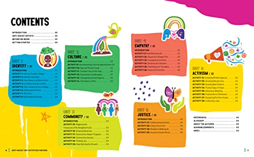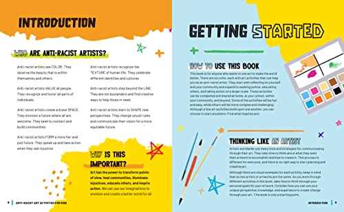 Harness the power of creativity to celebrate your community and change the world with Anti-Racist Art Activities for Kids. Do you think, “I’m just a kid. What can I do to make a difference?” Be an anti-racist artist! Have fun with 38 creative projects that empower you to use your art, actions, and words to create meaningful change. Start your anti-racist art-making journey by defining ideas like race, racism, and anti-racism. Dive into six sections, beginning with self-reflection before seeking justice and taking action! Each section’s theme includes an array of activity choices, including: Identity – Who you are and what makes you unique. Explore your identity and create a symbol that represents you. Culture – Your way of life and honoring what others value about theirs. Make a textile design inspired by your home and culture. Community – Connecting to people and places. Challenge your implicit biases and discover how to draw diverse people. Empathy – Understanding others and having compassion. Learn the meaning of equity by solving real-world math problems with art. Justice – Making a society that is fair for all. Create a miniature billboard that comments on a social issue. Activism – Creating change and transforming our communities. Mail a postcard to a politician that informs them of what you would like to see change. Other activities include designing a community mural and organizing people to make a positive change. As you work through the pages and explore the many parts of being an anti-racist artist, you will learn various art-making skills and engage with different materials such as paint, clay, textiles, and recycled materials. At the back, a helpful glossary defines terms that come up in anti-racist discussions, from “activism” to “white supremacy.” This book is just a starting point, and the possibilities are endless. There is no limit to your imagination and your impact! Contributors include: Abigail Birhanu, Khadesia Latimer, Paula Liz, Lori Santos, Tamara Slade and Anjali Wells.
