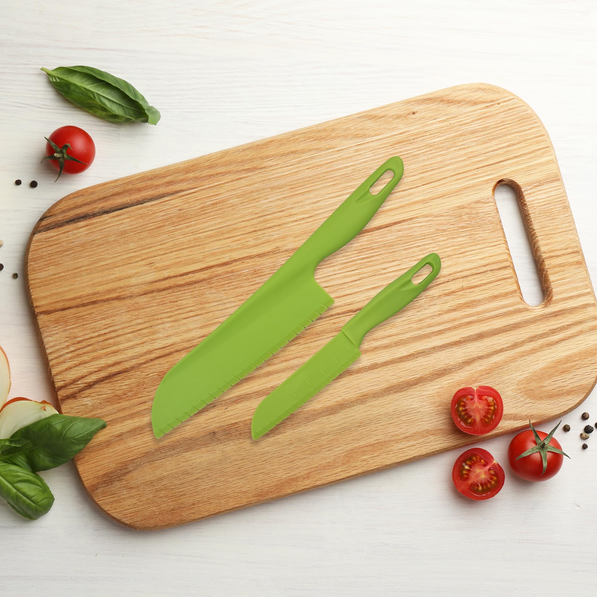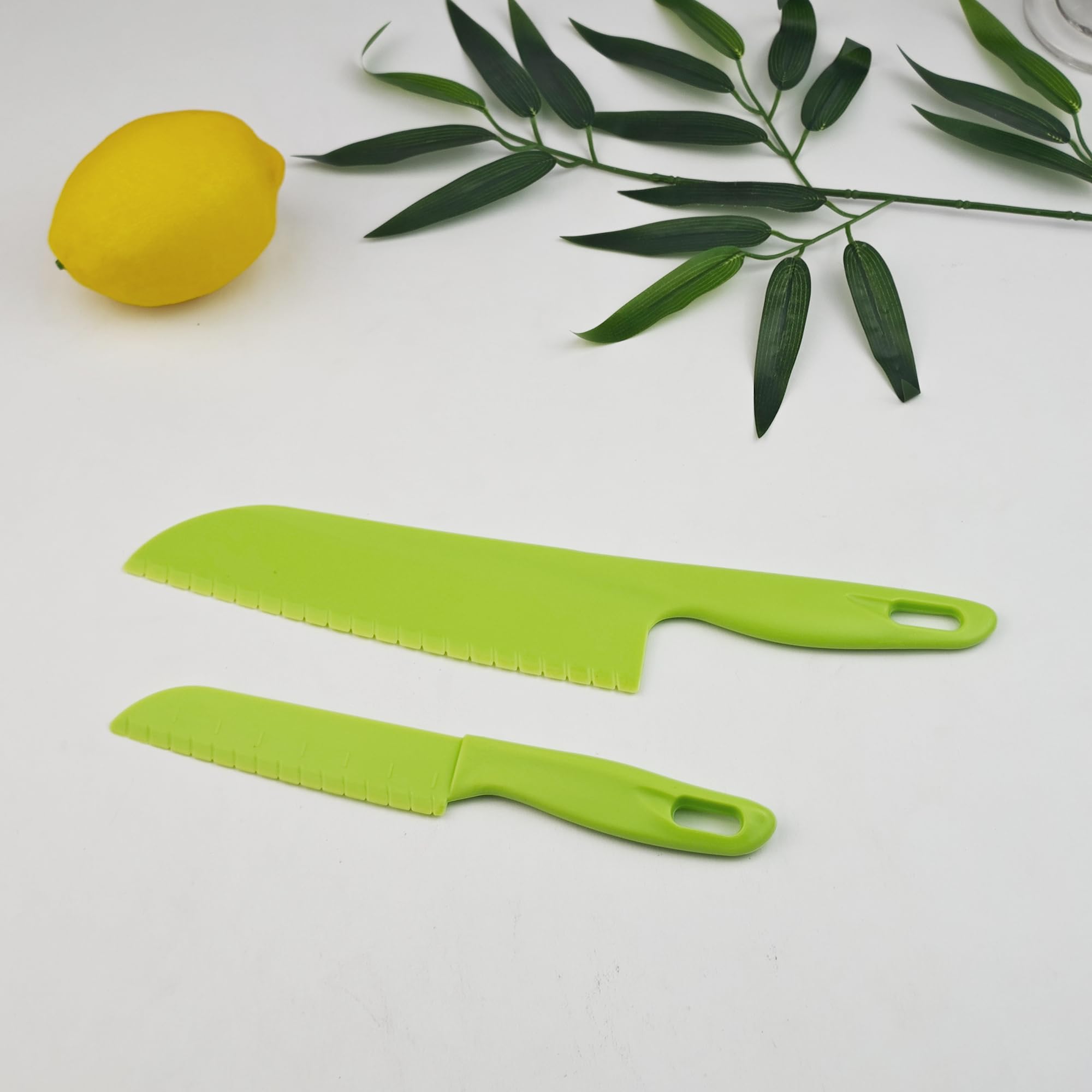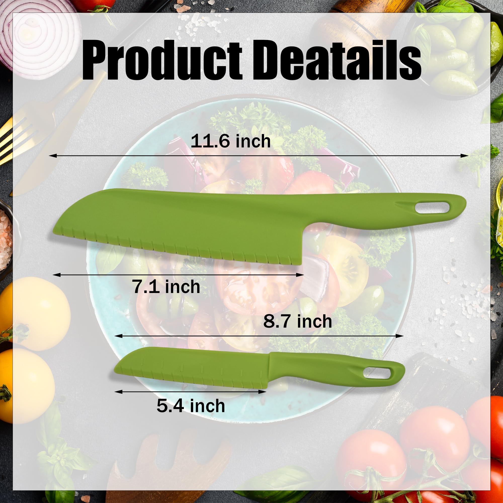 - Versatile Set for Every Kitchen This 2-piece lettuce knife set includes 11.6-inch and 8.7-inch nylon plastic knives, perfect for cutting lettuce with ease. The serrated blades enhance cutting performance, while the plastic material ensures safety, making it suitable for users of all ages and multiple occasions.