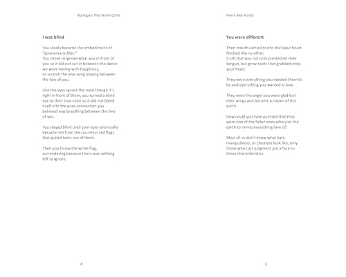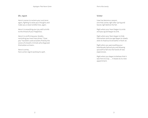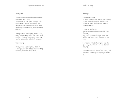 Self-made poet and social media sensation Pierre Jeanty has triumphed once again with his most recent collection, Apologies That Never Came. From words that never left your mouth to feelings you held on to, these words explore an unspoken space in heartbreak and pain, providing solace to the wounded soul. With massive social media followings and a loyal fan base, Jeanty is poised for great success for his sixth poetry collection entitled Apologies That Never Came. In this series of prose and poetry, both the words and sentiment are simple, uninterrupted by excess flair or complexity. Apologies That Never Came dissects the agony of heartbreak and loss through the unexpressed words and feelings; what is left over at the end. While his poems and prose delve into pain, they ultimately transcend that heartbreak, awakening everyone’s preexisting strength and capacity for growth. Much like in his previous collections, Jeanty has successfully created a tool for unity and healing out of the torment of his experiences.