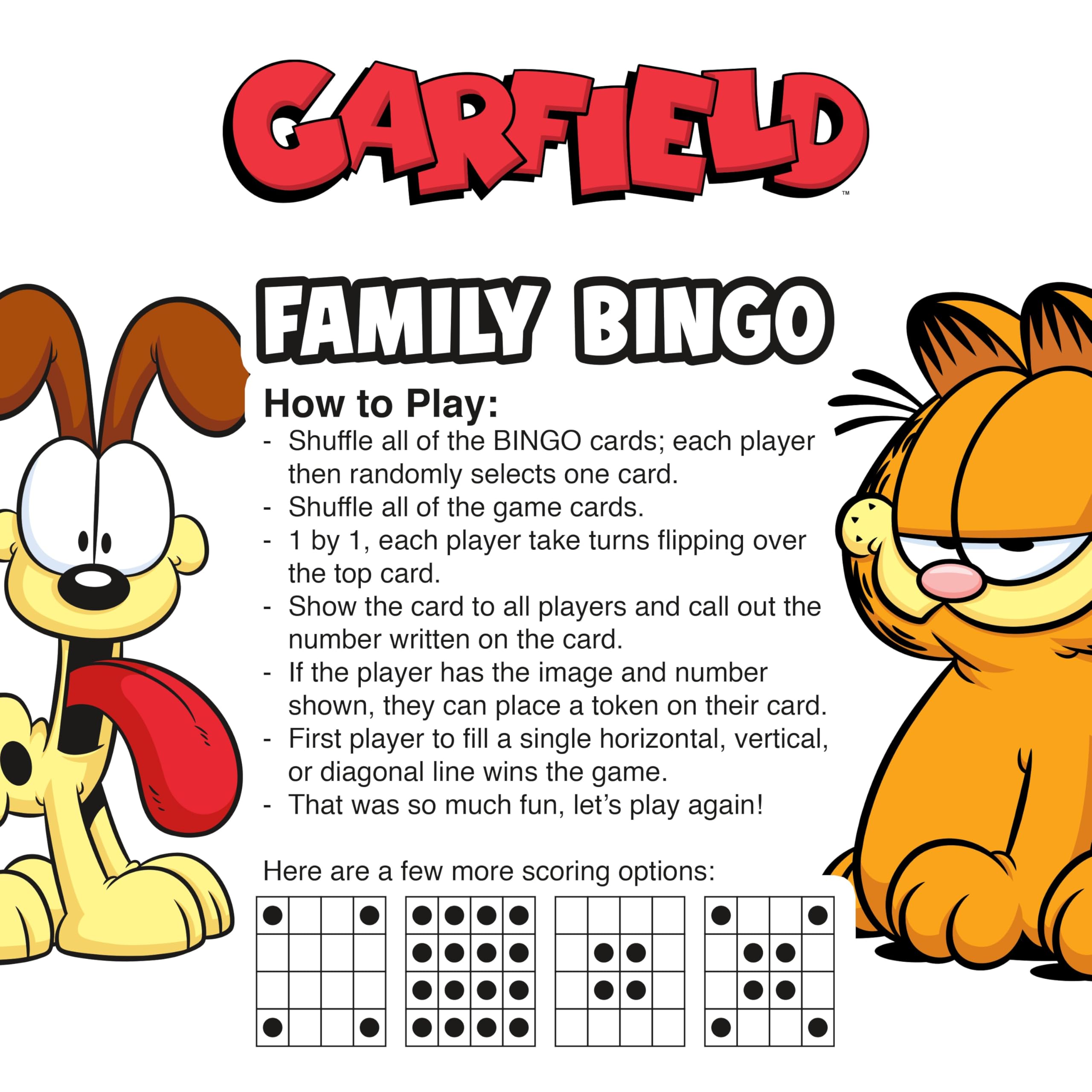 - A GREAT GAME FOR THE WHOLE FAMILY: Put your luck to the ultimate test with your fellow fans at your next Garfield party and game night with this incredibly entertaining Bingo game that the whole family can enjoy