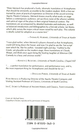 Originally adapted for the stage, Peter Meineck’s revised translations achieve a level of fidelity appropriate for classroom use while managing to preserve the wit and energy that led The New Yorker to judge his CloudsThe best Greek drama we’ve ever seen anywhere,” and The Times Literary Supplement to describe his Wasps as “Hugely enjoyable and very, very funny. A general Introduction, introductions to the plays, and detailed notes on staging, history, religious practice and myth combine to make this a remarkably useful teaching text.