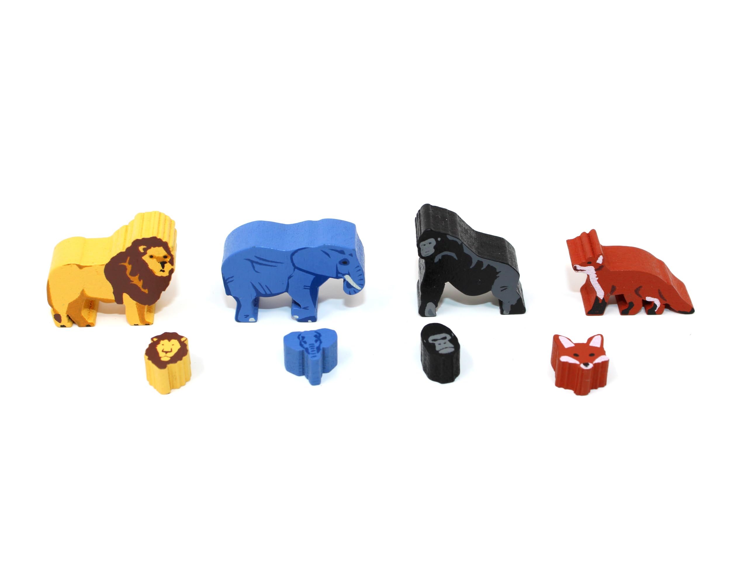 • Elephants (blue player) Gorillas (black player) Lions (yellow player) Foxes (red player) 1 Coffee Cup Token