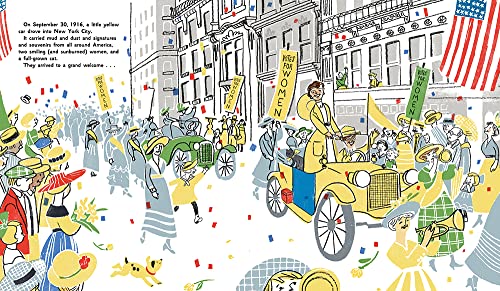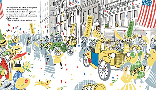 The author of Mesmerized delivers another fascinating glimpse into history, this time the story of two brave suffragists on a trek across America to spread the word: Votes for Women! In April 1916, Nell Richardson and Alice Burke set out from New York City in a little yellow car, embarking on a bumpy, muddy, unmapped journey ten thousand miles long. They took with them a teeny typewriter, a tiny sewing machine, a wee black kitten, and a message for Americans all across the country: Votes for Women! The women’s suffrage movement was in full swing, and Nell and Alice would not let anything keep them from spreading the word about equal voting rights for women. Braving blizzards, deserts, and naysayers–not to mention a whole lot of tires stuck in the mud–the two courageous friends made their way through the cities and towns of America to further their cause. One hundred years after Nell and Alice set off on their trip, Mara Rockliff revives their spirit in a lively and whimsical picture book, with exuberant illustrations by Hadley Hooper bringing their inspiring historical trek to life.