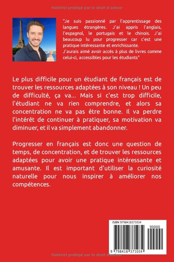 Do you know what is the biggest challenge for French learners? It is to find the best resources that are adapted to their level! A little bit of difficulty is fine, but too much difficulty would make you lose your focus and motivation. This novel is adapted for intermediate French level. Here in this great adapted novel for French learners, you will find: Most frequent words that are useful for conversations in French. The most common Verb Tenses. Notes and lists of vocabulary to help you memorize and maybe do flashcards. Great and interesting content that will keep you motivated and curious to continue. Keep pushing yourself! Reading this book in Intermediate French is a great practice to progress. Courage ! Continue a etudier et progresser en francais ! 🙂