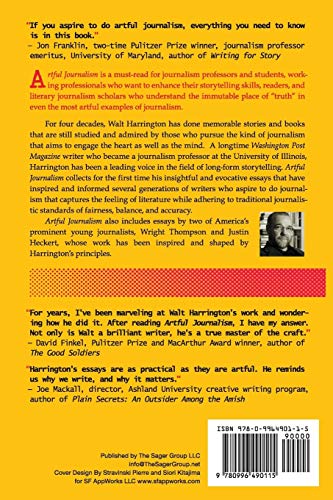 “If you aspire to do artful journalism, everything you need to know is in this book.”–Jon Franklin, two-time Pulitzer Prize winner, journalism professor emeritus, University of Maryland, author of Writing for Story Artful Journalism is a must-read for journalism professors and students, working professionals who want to enhance their storytelling skills, readers, and literary journalism scholars who understand the immutable place of “truth” in even the most artful examples of journalism. For four decades, Walt Harrington has done memorable stories and books that are still studied and admired by those who pursue the kind of journalism that aims to engage the heart as well as the mind. A longtime Washington Post Magazine writer who became a journalism professor at the University of Illinois, Harrington has been a leading voice in the field of long-form storytelling. Artful Journalism collects for the first time his insightful and evocative essays that have inspired and informed several generations of writers who aspire to do journalism– that captures the feeling of literature while adhering to traditional journalistic standards of fairness, balance, and accuracy. Artful Journalism also includes essays by two of America’s prominent young journalists, Wright Thompson and Justin Heckert, whose work has been inspired and shaped by Harrington’s principles. “For years, I’ve been marveling at Walt Harrington’s work and wondering how he did it. After reading Artful Journalism, I have my answer. Not only is Walt a brilliant writer, he’s a true master of the craft.”–David Finkel, Pulitzer Prize and MacArthur Award winner, author of The Good Soldiers “Harrington’s essays are as practical as they are artful. He reminds us why we write, and why it matters.”–Joe Mackall, director, Ashland University creative writing program, author of Plain Secrets: An Outsider Among the Amish