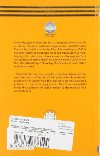 Asana Prana Yama Mudra Bandha is recognised internationally as one of the most systematic yoga manuals today. Since it’s first publication by the Bihar School of yoga in 1969 it has been reprinted seventeen times and translated into many languages. It is the main reference text used by Yoga teachers and students of Bihar Yoga/Satyananda Yoga within the International Yoga Movement, and many other traditions as well. This comprehensive text provides clear illustrations. step by step directions and details of chakra awareness. It guides the practitioner or teacher from the simplest to the most advanced practices of hatha yoga system. A therapeutic index is provided for use by doctors and yoga therapists incorporating recent information from research into yoga. This edition successfully brings the exposition of yoga practices to the standard of a university text. This latest Fourth Revised Edition has been revised and updated under the direction of Swami Niranjananda Saraswati,the successor of Swami Satyananda Saraswati. Since publication of the first edition,interest in yoga has spread widely.Now the book is used in ashrams,centres and yoga schools in many countries as the standard textbook for teachers and students alike.The techniques presented have been assimilated by fields as diverse as medicine,education,entetainment,business,sports and the training of spiritual aspirants.