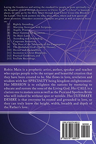 Laying the foundation and setting the standard for people to grow spiritually in the Kingdom of God through Ascension in Christ. To be “in Christ” in heavenly places, everyone must go by the Holy Spirit through Jesus Christ’s Cross – the Blood of the Lamb. This book answers the who, what, when, where and how questions about ascension. Abundant ascension examples are given as well as especial focus on: [1]Rightly Ascending,[2]Marrying Ascension with scripture,[3]Angelic Priests,[4]Heart Gateway for Ascension.[5]No Man’s Land, [6]Ascending and Descending,[7]Corporate Ascension,[8]The Door of the Tabernacle of the Congregation,[9]The Merkabah (God’s Chariot Throne),[10]Decrees and Declarations,[11]Ascension in Christ Blueprints,[12]Practical Guidelines for Group Ascensions, and[13]YouTube Recordings of Group Ascensions.