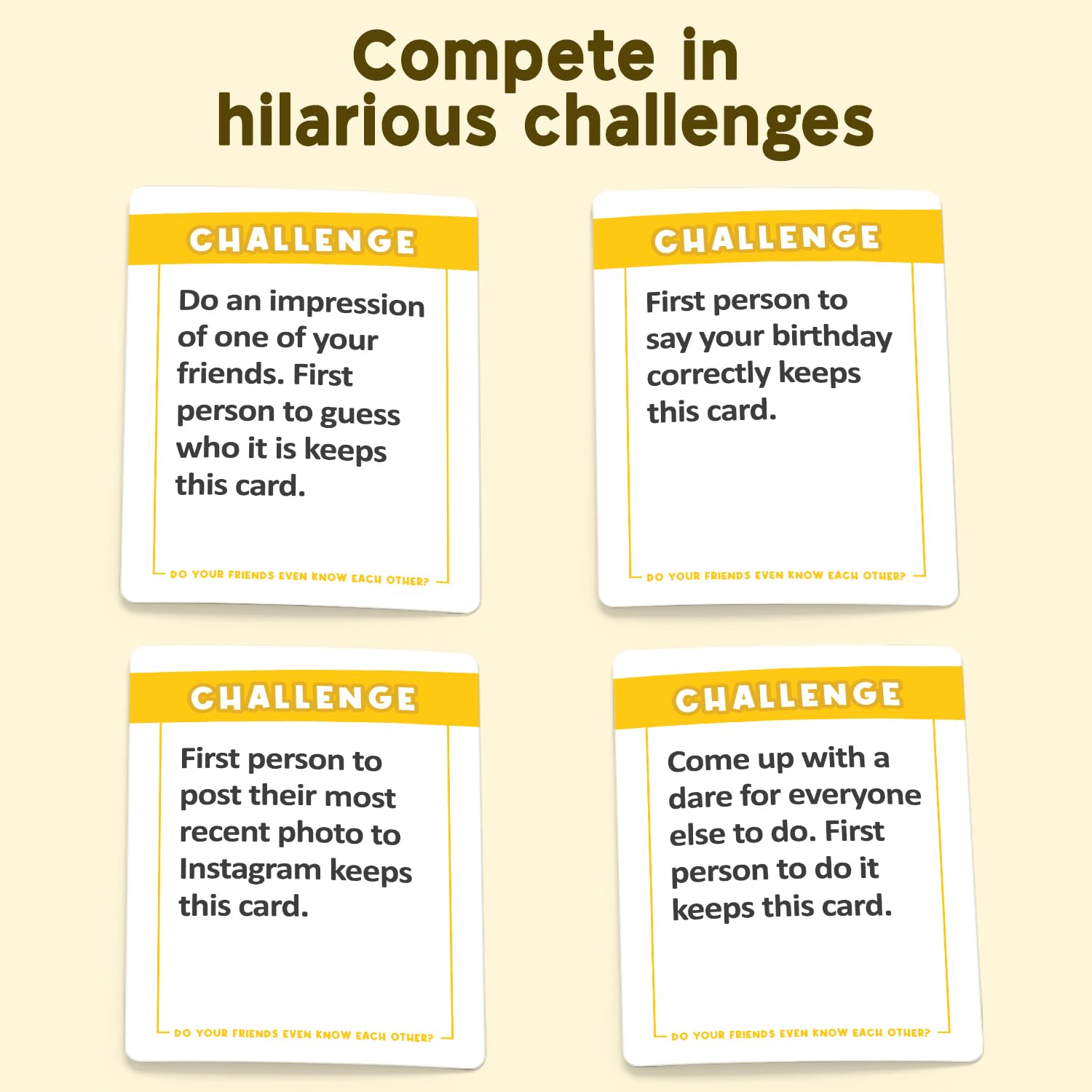 Laugh with and at your friends as you compete and perform hilarious challenges.