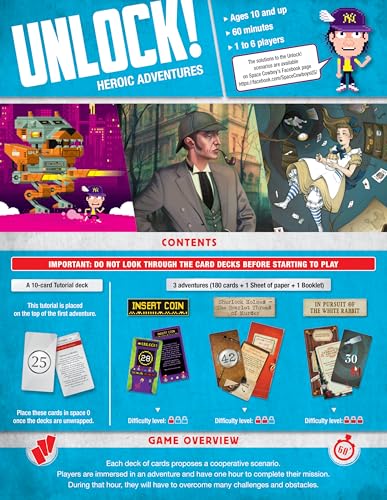- THRILLING ESCAPE ROOM ADVENTURES: Unlock! Heroic Adventures offers three captivating scenarios that bring the excitement of escape rooms to your tabletop.