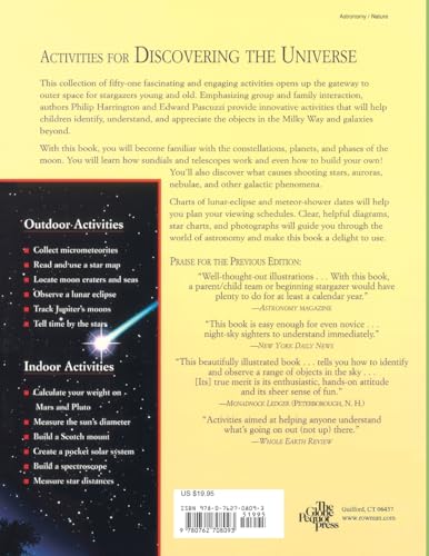 Kids and adults can explore outer space from their own backyards with this handy book of unusual and engaging activities. By simply looking up at the sky- with the unaided eye- parents, camp counselors, and other group leaders can help children identify, understand, and appreciate the inhabitants of the Milky Way and galaxies beyond. With this book, amateur star-gazers will become acquainted with the constellations, planets, and phases of the moon; how compasses, sundials, and telescopes work; and what causes shooting stars and other galactic phenomena. Down-to-earth explanations of astronomical events and concepts helps readers navigate their way through the stars.
