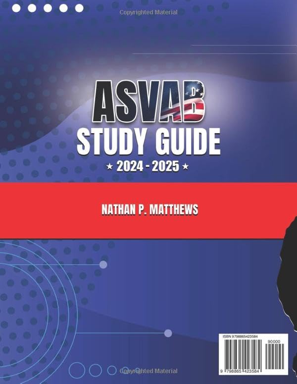 Unlock Military Excellence: Your Complete Path to Mastering the ASVAB! Get 98,2% PASS RATE Venturing toward an illustrious career with the Armed Forces? The intricate landscape of the ASVAB exam stands sentinel. Let this guide be your compass. Delve into this masterclass of resources, you will find: Concept Clarity: Comprehensive coverage of essential subjects, including General Science, Arithmetic Reasoning, Mathematics Knowledge, Electronics Information, and more. Practice Precision: Authentic ASVAB practice tests and targeted questions for each chapter, ensuring you’re equipped for every twist and turn the exam might throw. Word Wizards: Deep dives into Word Knowledge and Paragraph Comprehension, honing your linguistic prowess for maximum scores. Tech-Savvy Training: Detailed insights into specialized areas such as Auto & Shop Information, Mechanical Comprehension, and Assembling Objects. Smart Strategies: Expert methodologies to handle tricky questions, optimize time, and boost accuracy. Feedback Loop: Practice Exam 1, complete with answers and explanations, ensures you understand not just the ‘what’, but the ‘why’ of every solution. Mental Might: Techniques to fortify your mental stamina, ensuring poise and focus as you tackle the ASVAB challenge. This isn’t merely a study guide, it’s your strategic blueprint to the revered halls of the Armed Forces, packed with the pride, growth, and honor that service entails. Dreaming of the uniform? Prep with purpose. Equip yourself with this unparalleled guide and march resolutely towards your coveted badge of honor in the U.S. Armed Forces. Grab Your Copy Today Scroll UP and Click “BUY NOW”
