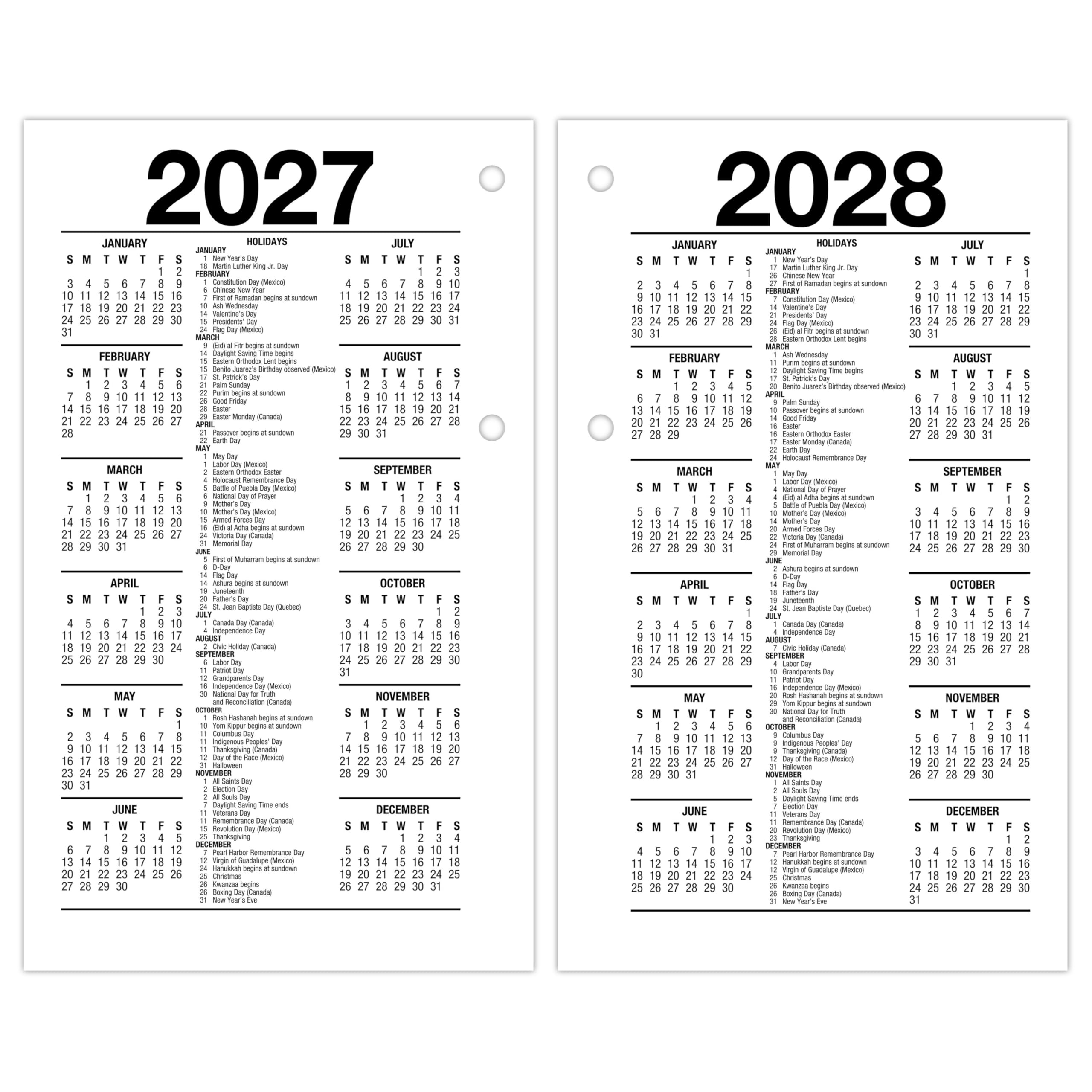 - HELPFUL FEATURES – Past, current and future month calendar references are shown for quick date checking and future planning. Special pages include a 3-year reference calendar and 3-year holiday list.