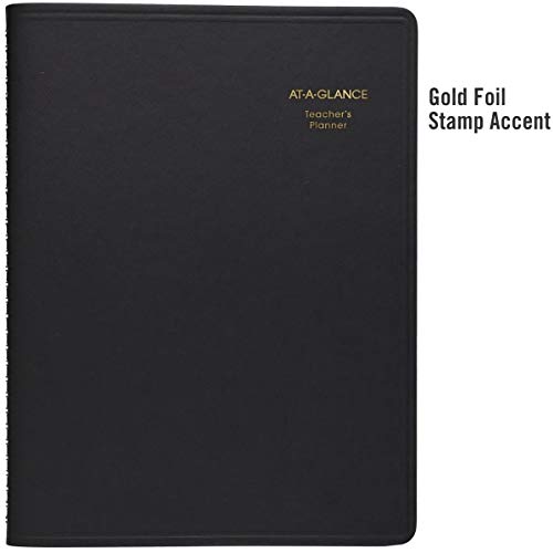 AT-A-GLANCE Teacher Planner, 8-1/4″ x 10-7/8″, Undated Weekly & Daily Planner, Academic Lesson Plan Book for Family Homeschool Supplies, Agenda with Twin-Wire Binding, Black Leather (8015505)