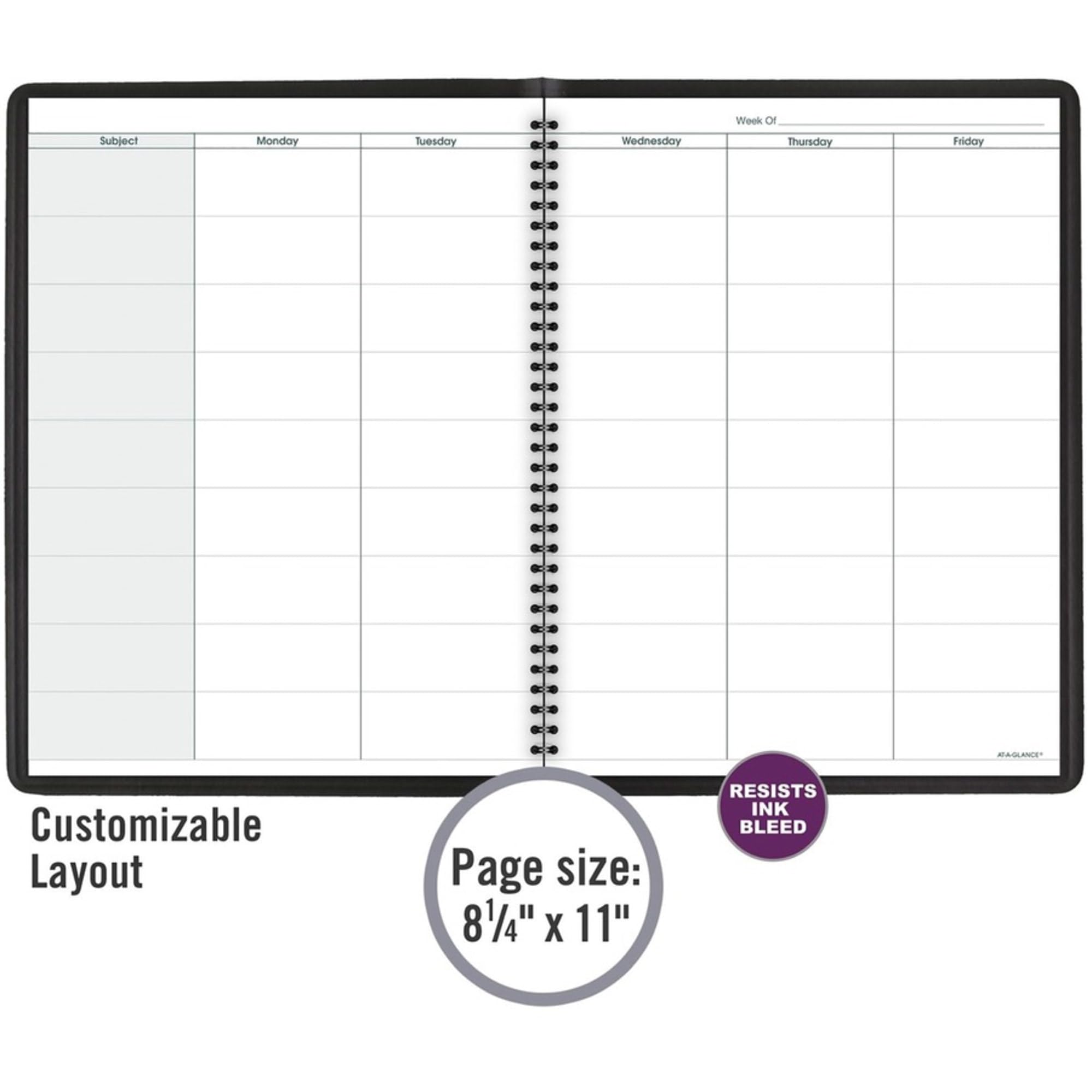 AT-A-GLANCE Teacher Planner, 8-1/4" x 10-7/8", Undated Weekly & Daily Planner, Academic Lesson Plan Book for Family Homeschool Supplies, Agenda with Twin-Wire Binding, Black Leather (8015505)