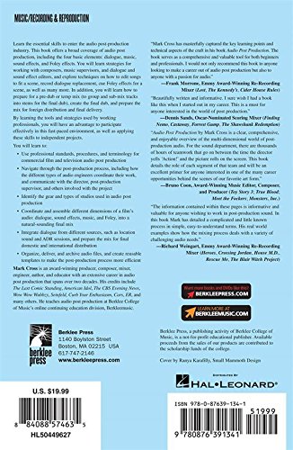 (Berklee Guide). Learn the essential skills to enter the audio post-production industry. This book offers a broad coverage of audio post production, including the four basic elements: dialogue, music, sound effects, and Foley effects. You will learn strategies for working with composers, music supervisors, and dialogue and sound effect editors, and explore techniques on how to edit songs to fit a scene, record dialogue replacement, cue Foley effects for a scene, as well as many more. In addition, you will learn how to prepare for a pre-dub or temp mix (to group and sub-mix tracks into stems for the final dub), create the final dub, and prepare the mix for foreign distribution and final delivery. By learning the tools and strategies used by working professionals, you will have an advantage to participate effectively in this fast-paced environment, as well as applying these skills to independent projects. Includes foreword, introduction, afterword, author biography and index.