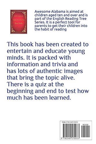 Introducing: Awesome Alabama for Kids Awesome Alabama is aimed at children aged seven and over and is part of the English Reading Tree Series. It is a perfect tool for parents to get their children into the habit of reading. This book has been created to entertain and educate young minds. It is packed with information and trivia and has lots of authentic images that bring the topic alive. There is a quiz at the beginning and end to test how much has been learned. What people are saying about the English Reading Tree Excellent books that not only improve reading ability but educate: Goodreads Very well presented and I particularly enjoyed the quiz at the end: Post Online Simple, easy to read and full of interesting facts. What more can a parent ask? Island EBooks