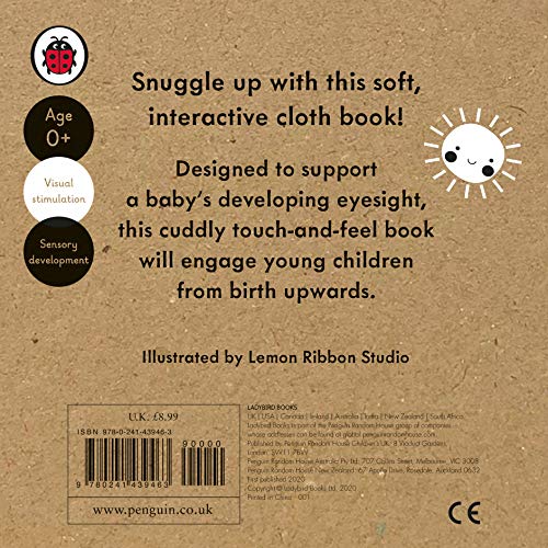 Young babies will love snuggling up with this soft, padded cloth book! With simple images, black-and-white illustrations and a touch-and-feel on every double page, this beautiful cloth book is designed to develop babies’ eyesight while helping to focus their attention and concentration from birth upwards. A fun, multi-sensory experience for parents and little ones to enjoy together, making this the perfect first book for children. Visual stimulation Sensory development Recommended for children aged 0+ Illustrated by Lemon Ribbon Studio Also available: Baby Touch: Ears: a touch-and-feel cloth book Baby Touch: Tails: a touch-and-feel cloth book