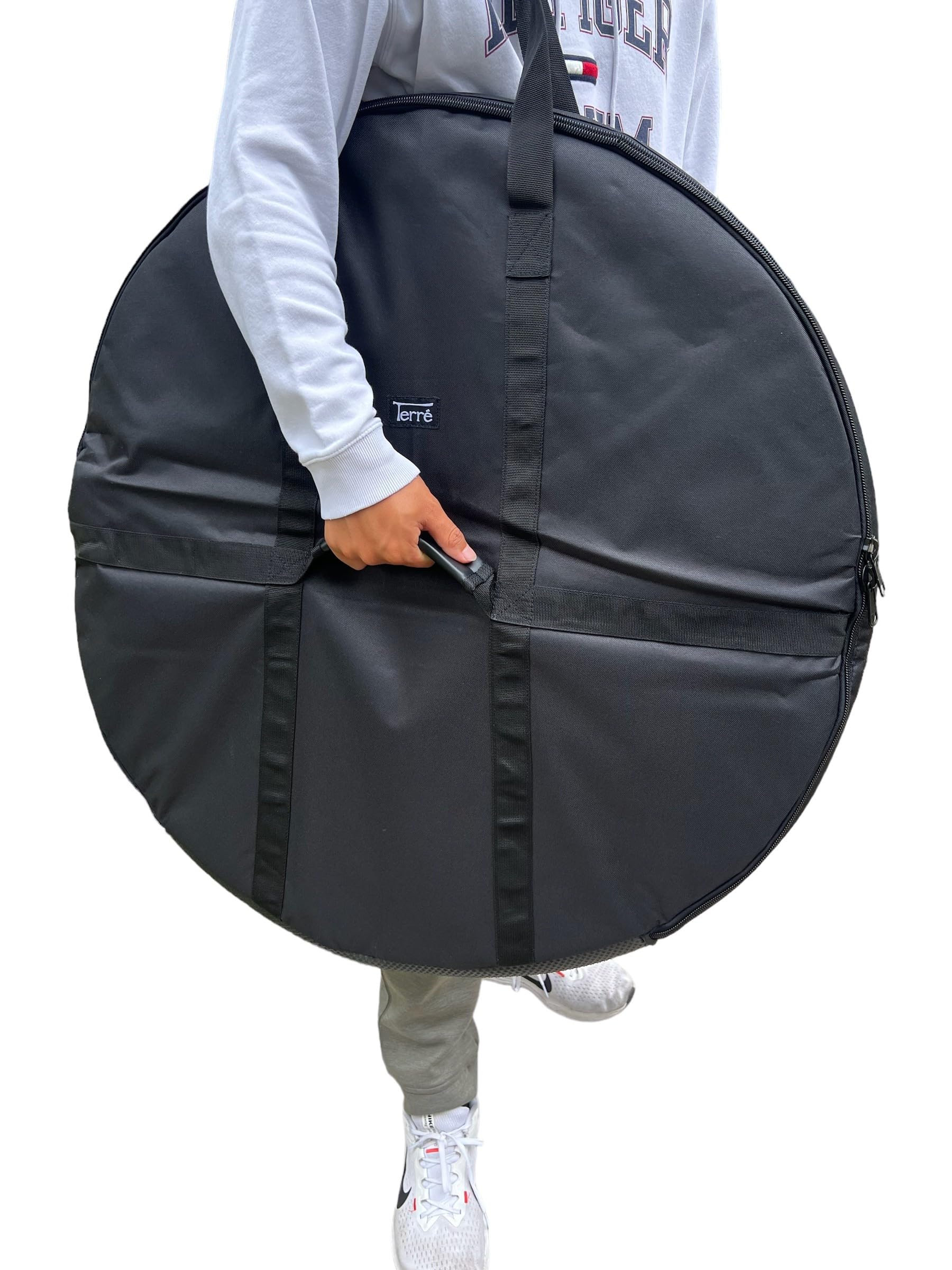 - 32″ Bag has no external pockets, but does include an extra hand-hold for heavier drums and gongs