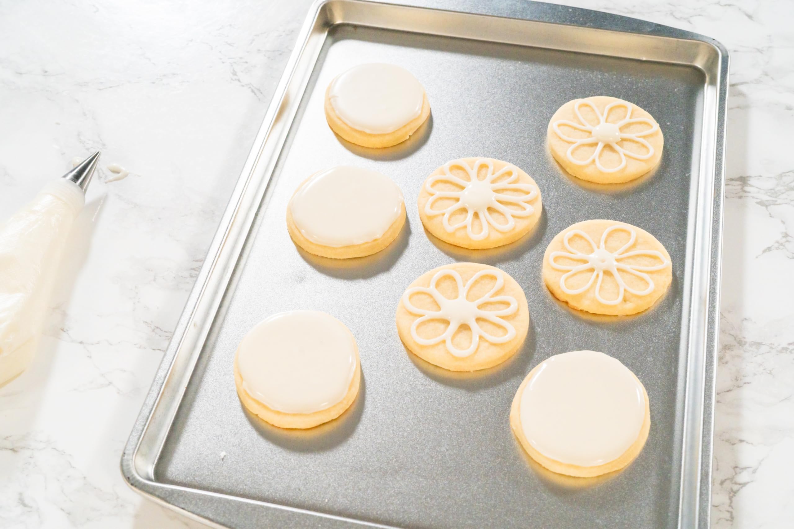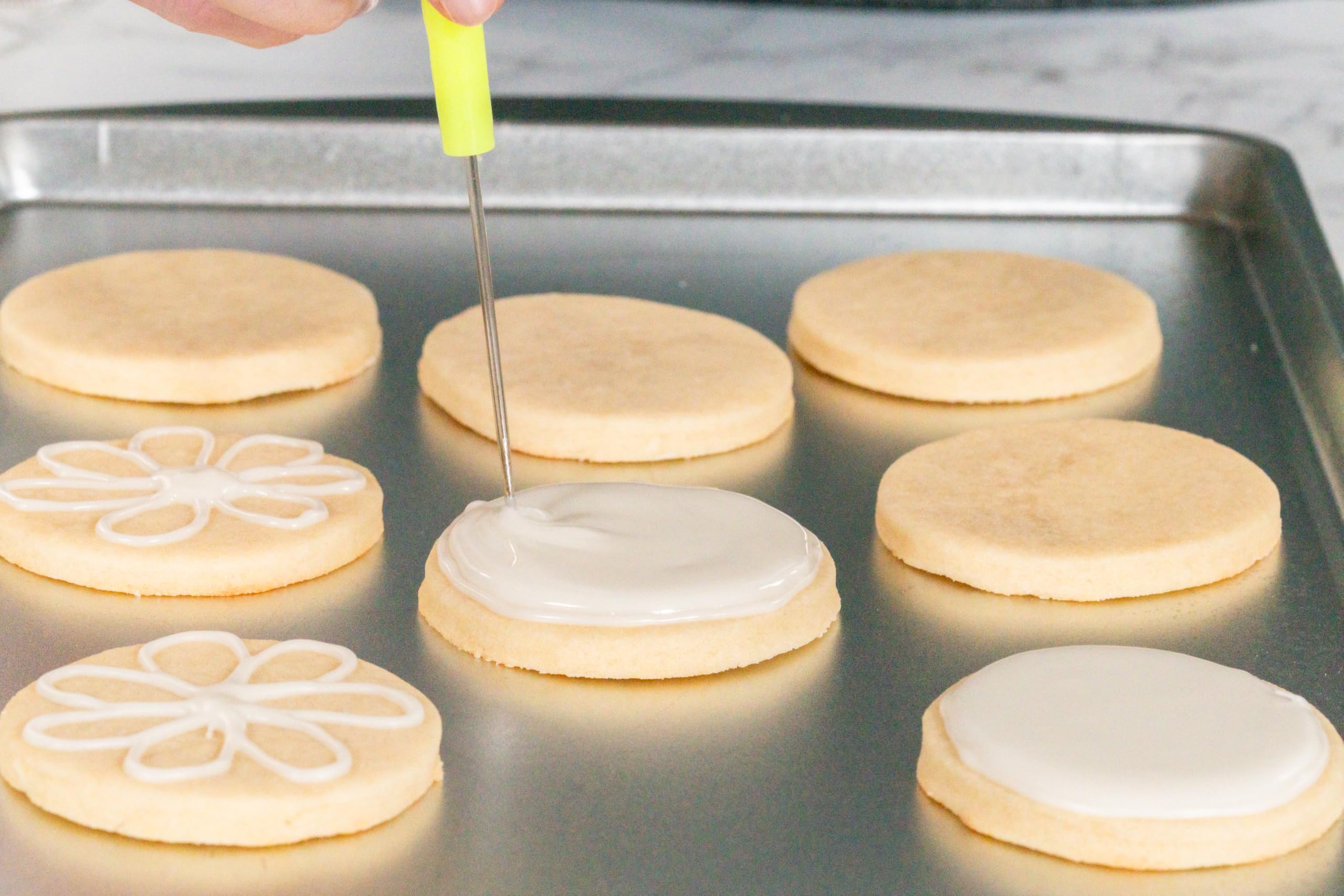 - Royal Icing Tools – This starter set equips you with all the essential tools for cookie decorating, including a spatula, silicone measuring cup, piping bags, couplers, bag clamps, piping tips and scribe tool.