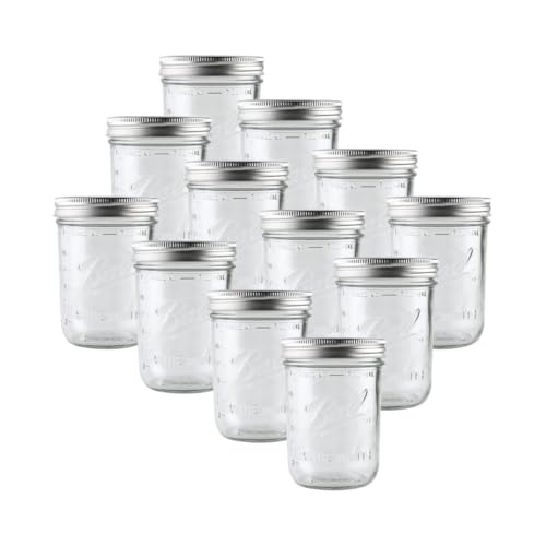 Ball – 16oz Wide Mouth Jars with Lids & Bands 12 Pack Jars, Large Glass Mason Jar for Food Storage with airtight Lid, 0.125 Gallon Glass Jar with Lid and Bands, Set of 12