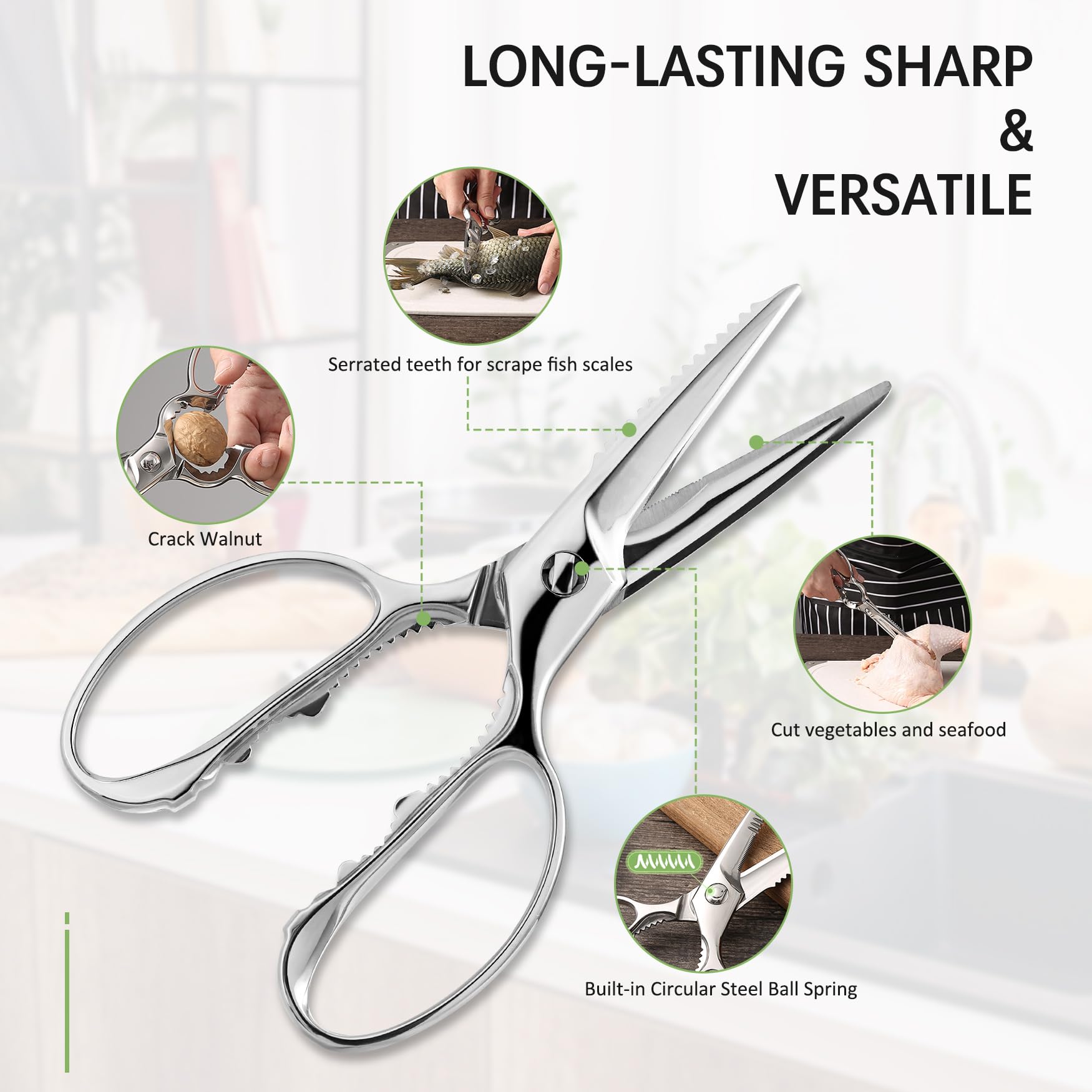 - Superior Versatility – Heavy Duty Kitchen Scissors are the ultimate multi-purpose tool for your kitchen. Whether you’re cutting through meat, poultry, chicken, fish, seafood, herbs, or bread, these cooking scissors are designed to handle it all with precision and ease.