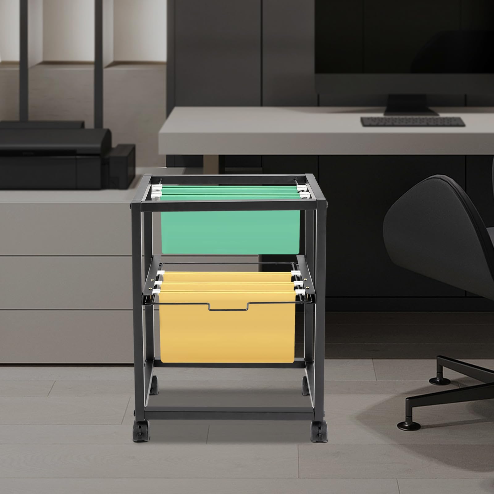 - Efficient Storage Solution: Featuring 2 tiers, this cart easily accommodates binders, journals, papers, and documents, freeing up workspace and promoting a clutter-free environment. Specifically designed for file sizes, each tier can be hung horizontally or vertically, enhancing organization and efficiency in your office