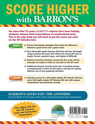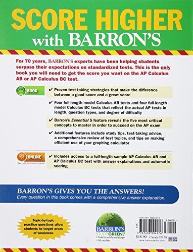 Always study with the most up-to-date prep! Look for Barron’s AP Calculus, Fifteenth Edition, ISBN 978-1-4380-1173-8, on sale August 6, 2019. Publisher’s Note: Products purchased from third-party sellers are not guaranteed by the publisher for quality, authenticity, or access to any online entitles included with the product.