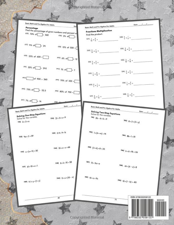 Be the first to review “Basic Math and Pre Algebra Math Workbook for Adults: Addition, Subtraction, Multiplication, Division, Fractions, One-Step and Two-Step Equations, … Adults with Answers (Math Practice Workbooks)”